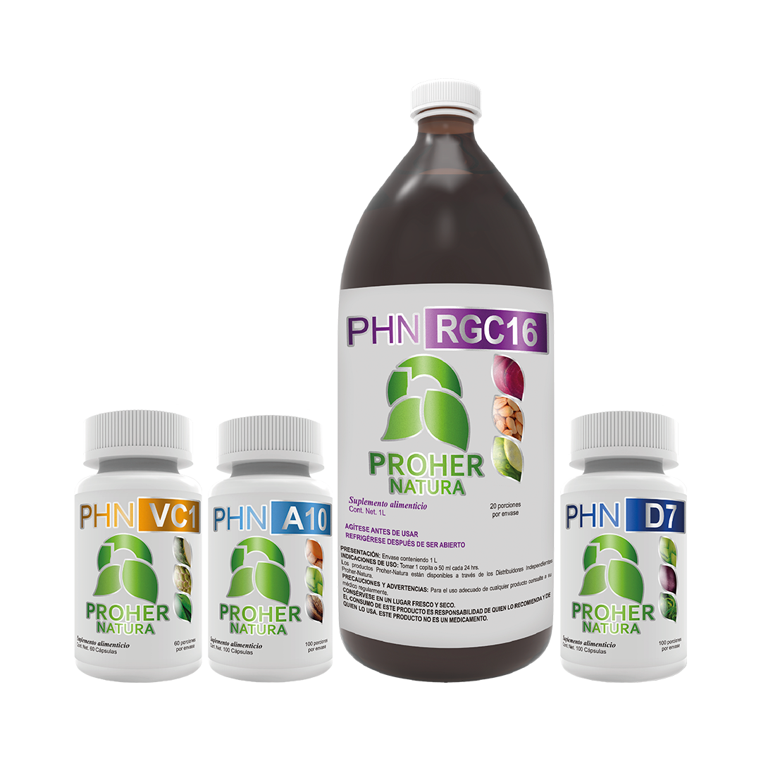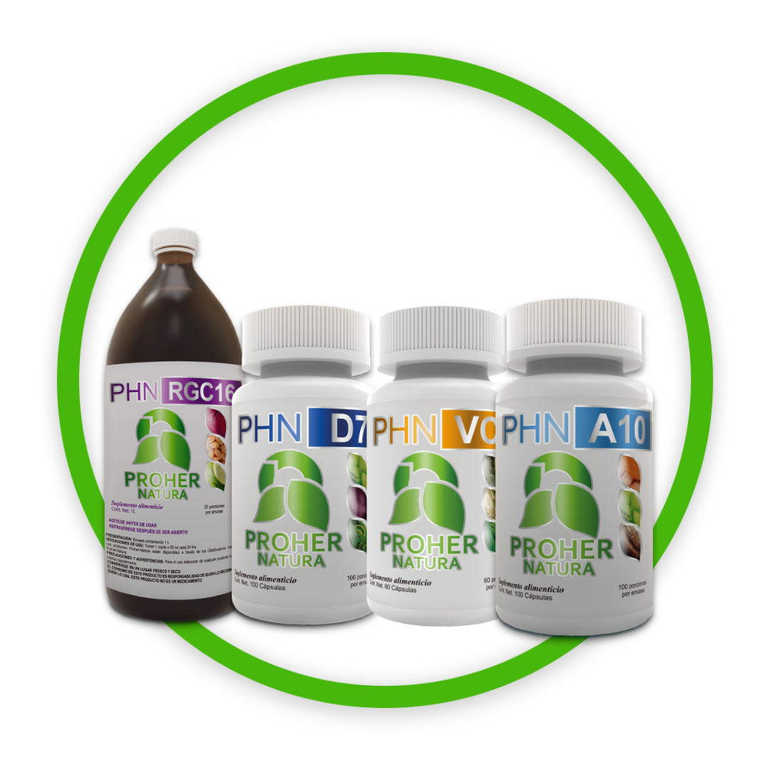 PHN A10: Lúpulo, Cúrcuma, Nogal negro, Malva, Vitamina C, Vitamina E, Vitamina B6, Vitamina B1, Vitamina A, Vitamina K, Vitamina D y Vitamina B12.