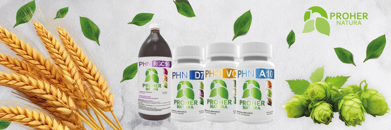 PHN D7: Lúpulo, Cúrcuma, Alga de Chlorella, Acai, Maqui, Vitamina C y Vitamina E.